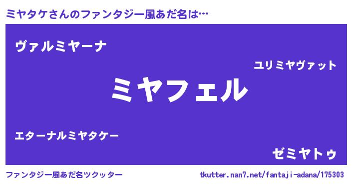 | 男性向けラノベタイトル風あだ名 | 『ミヤタケの憂鬱』 |