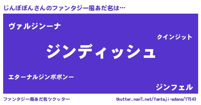 | 男性向けラノベタイトル風あだ名 | 『じんぼぼんという概念が存在しない退屈な世界 』 |