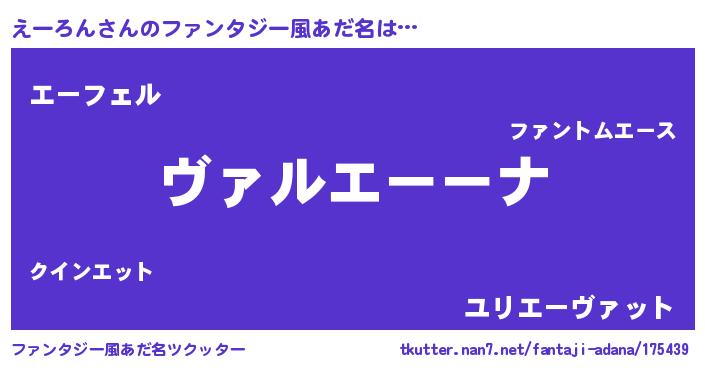 | 男性向けラノベタイトル風あだ名 | 『魔弾の王とえーろん』『えーろんの憂鬱』 |