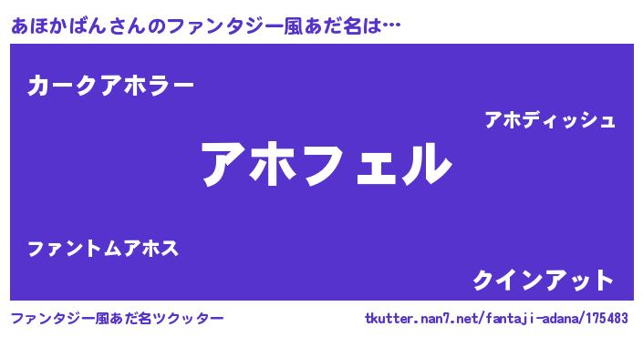 | 胡散臭い通販商品みたいなあだ名 | 『必ず成功する霊験あらたかなお札…その名も「あほかばん」』 |