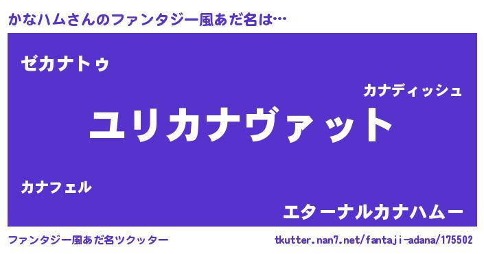 | 意味不明あだ名 | 『ニラ科かなハム属』『自称かなハム』 |