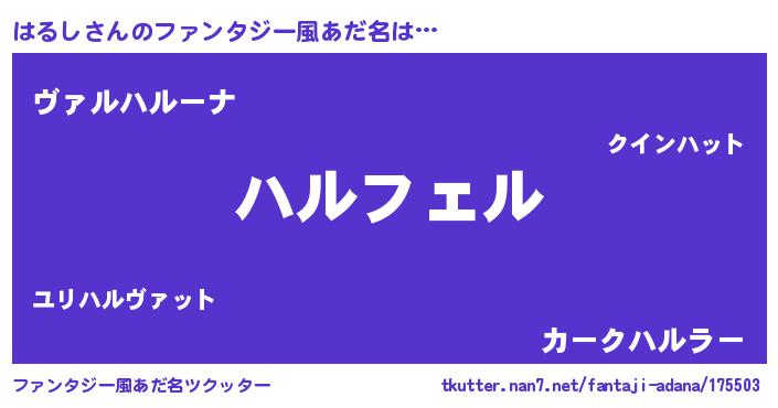 | ポケモン風あだ名 | 『ハルチュウ』『ハールイ』 |