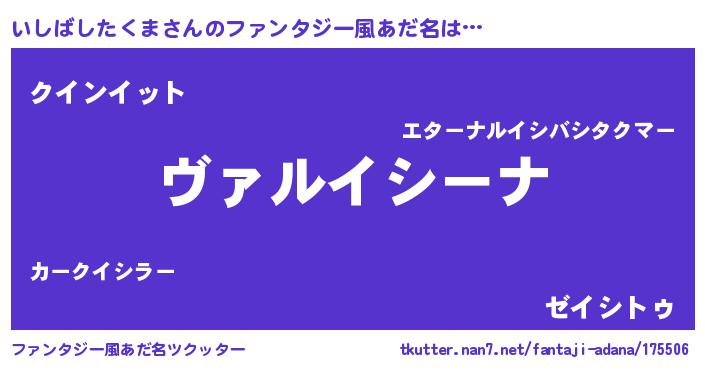 | 男性向けラノベタイトル風あだ名 | 『この素晴らしい世界にいしばしたくまを!』 |