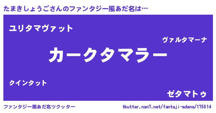 | ヒーロー風カッコイイあだ名 | 『最強戦士タマキショウゴ』 |