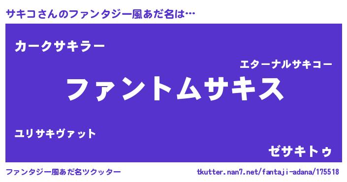 | ヒーロー風カッコイイあだ名 | 『黄金騎士サキ』『超時空戦士サキコ』 |