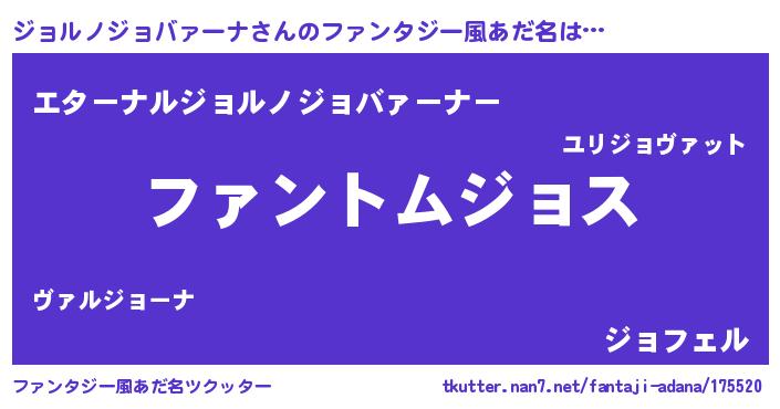 | 欧米人風あだ名 | 『ウサインジョルノジョバァーナ』 |