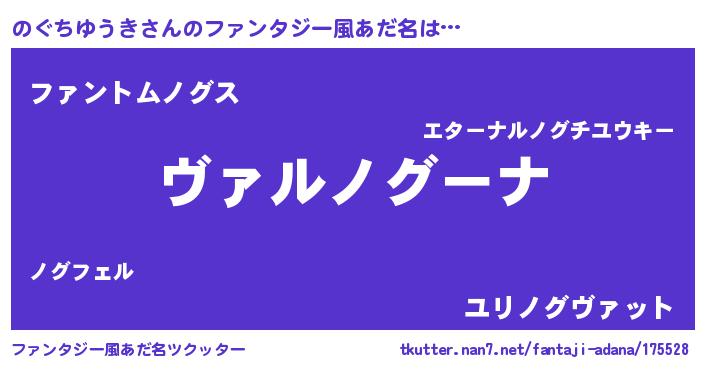 | 男性向けラノベタイトル風あだ名 | 『魔弾の王とのぐちゆうき』 |