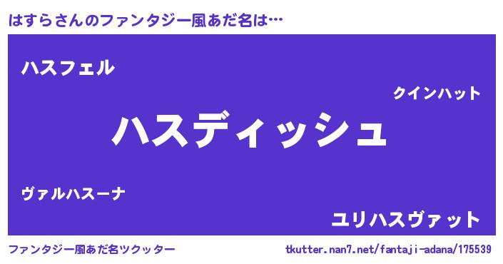 | 胡散臭い通販商品みたいなあだ名 | 『来世でも幸せになれる健康食品…その名も「はすら」』 |