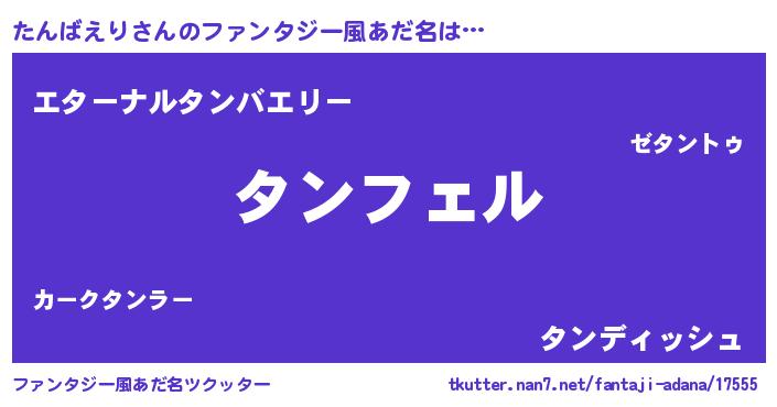 | 意味不明あだ名 | 『ペロリンたんばえり』『自称たんばえり』 |
