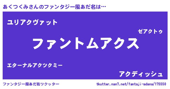 | 意味不明あだ名 | 『とにかく怪しいあくつくみ』 |