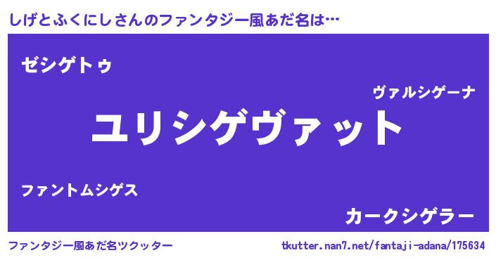 | 男性向けラノベタイトル風あだ名 | 『シゲトフクニシスレイヤー』 |