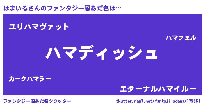 | ヒーロー風カッコイイあだ名 | 『ネオハマイル』『ウルトラはまいるマン』 |