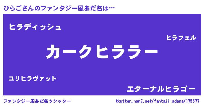 | 男性向けラノベタイトル風あだ名 | 『緋弾のヒラゴ』『はたらくひらごさま!』 |