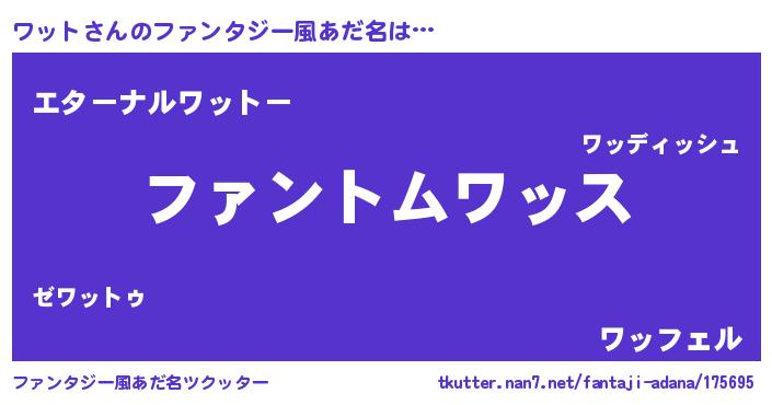| ポケモン風あだ名 | 『ワッゴンZ』『ヒワット』『ゼニワッ』 |