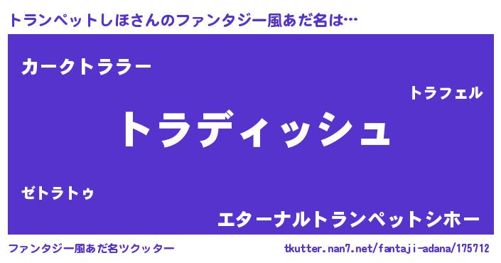 | 胡散臭い通販商品みたいなあだ名 | 『来世でも幸せになれる水素水…その名も「トランペットしほ」』 |