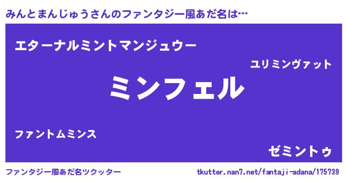 | 胡散臭い通販商品みたいなあだ名 | 『億万長者になれる霊験あらたかなお札…その名も「みんとまんじゅう」』 |