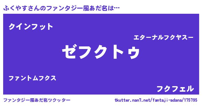 | 意味不明あだ名 | 『自称ふくやす』『ペロリンふくやす』 |