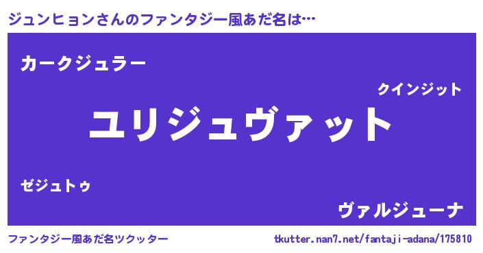 | 男性向けラノベタイトル風あだ名 | 『ジュンヒョンスレイヤー』 |