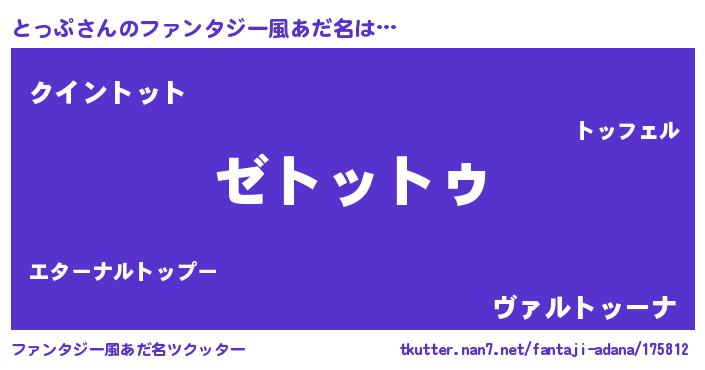 | 男性向けラノベタイトル風あだ名 | 『Re:とっぷから始める異世界生活』 |