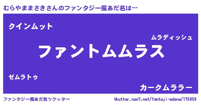 | ポケモン風あだ名 | 『ヒムラヤママサキ』『ムラゴンZ』 |