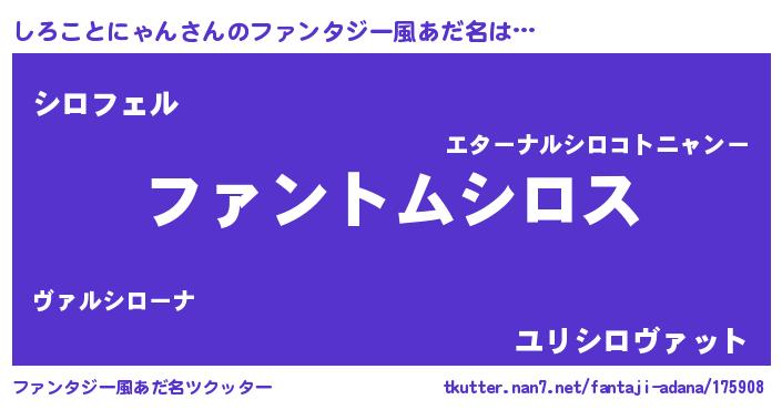| 男性向けラノベタイトル風あだ名 | 『しろことにゃんの嫁は女の子じゃないと思った?』 |