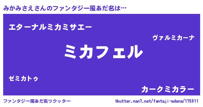 | ヒーロー風カッコイイあだ名 | 『スーパーミカミサエ』『仮面ミカダー』 |