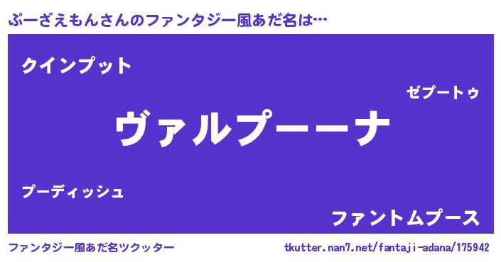 | ポケモン風あだ名 | 『プーーイ』『プックウザ』 |