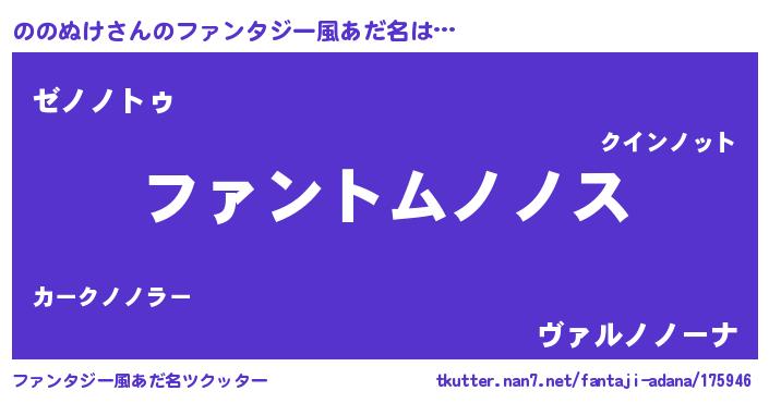 | 男性向けラノベタイトル風あだ名 | 『ののぬけに滅ぼされるだけの簡単なお仕事です』 |