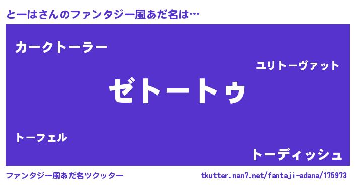 | 男性向けラノベタイトル風あだ名 | 『Re:とーはから始める異世界生活』 |