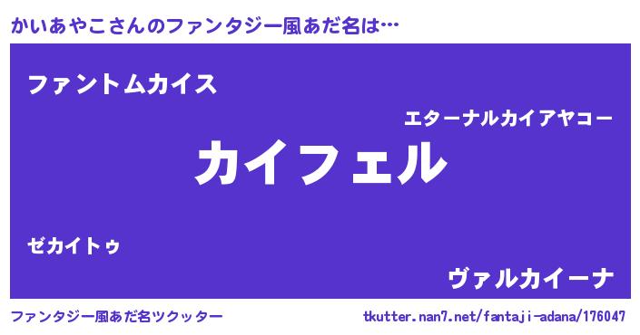 | ヒーロー風カッコイイあだ名 | 『スーパーカイアヤコ』『天弓騎士カイ』 |