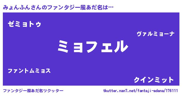 | 意味不明あだ名 | 『ペロリンみょんふん』『自称みょんふん』 |