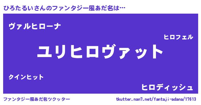 | 男性向けラノベタイトル風あだ名 | 『ヒロタルイスレイヤー』 |