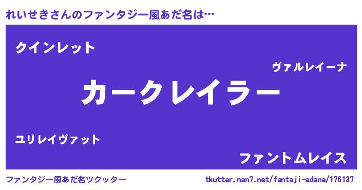 | ヘコむあだ名 | 『れいぷりん』『れいせき(爆)』 |