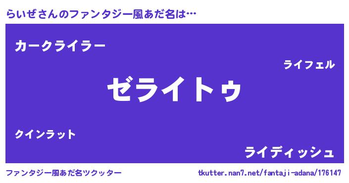 | 男性向けラノベタイトル風あだ名 | 『Re:らいぜから始める異世界生活』 |