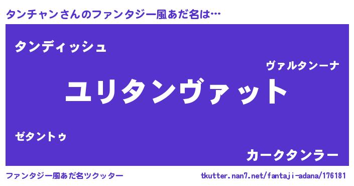 ヘコむあだ名 | 『タンチャン(小並感)』『タンっぺ』 |