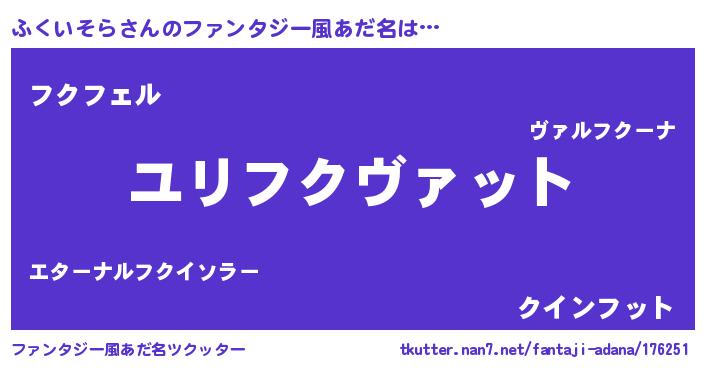 | 男性向けラノベタイトル風あだ名 | 『ふくいそら~年齢イコール彼女いない歴の魔法使い~』 |