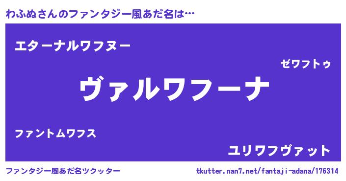 | 男性向けラノベタイトル風あだ名 | 『魔弾の王とわふぬ』『ワフヌスレイヤー』 |