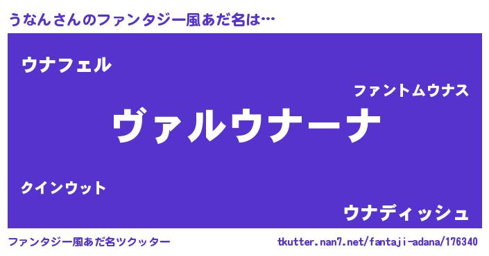 | 男性向けラノベタイトル風あだ名 | 『この素晴らしい世界にうなんを!』 |