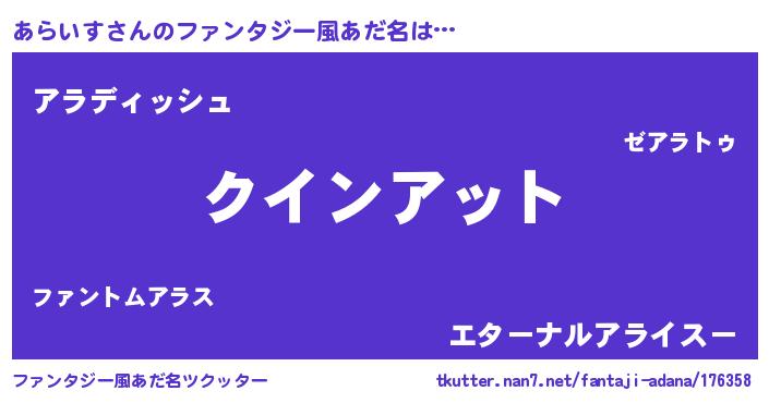 | 女子向けラノベタイトル風あだ名 | 『あらいす恋絵巻』『あらいすの契約王妃』 |