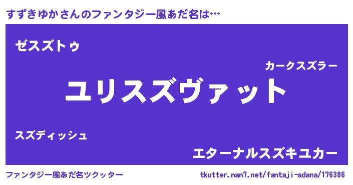 | 男性向けラノベタイトル風あだ名 | 『スズキユカスレイヤー』 |