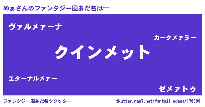 | 女子向けラノベタイトル風あだ名 | 『めぁ夫妻のなれそめ』『めぁ伯爵の花嫁』 |