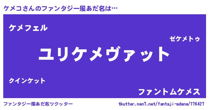 | ヒーロー風カッコイイあだ名 | 『スーパーケメコ』『魔戒騎士ケメ』 |