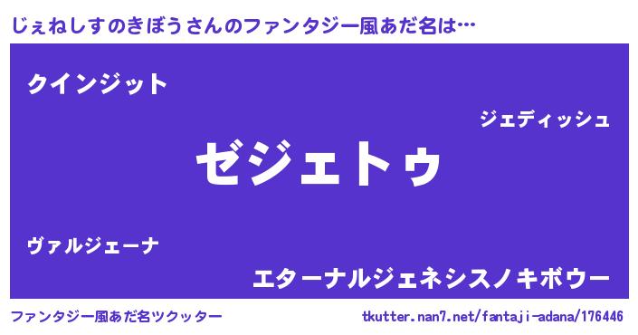 | 意味不明あだ名 | 『自称じぇねしすのきぼう』 |