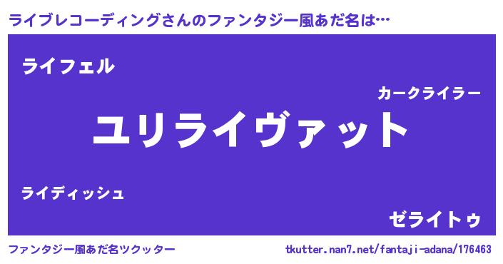 | 男性向けラノベタイトル風あだ名 | 『ライブレコーディングスレイヤー』 |
