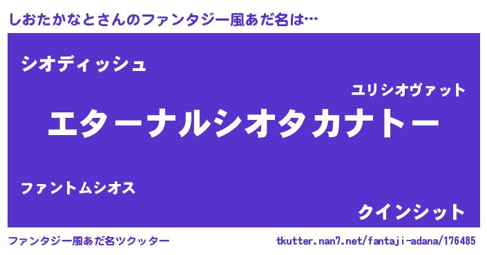 | 女子向けラノベタイトル風あだ名 | 『しおたかなとの雑貨屋さん』 |