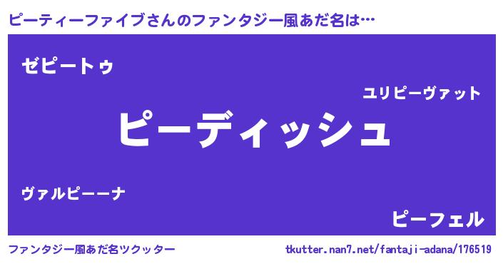 | 男性向けラノベタイトル風あだ名 | 『ピーティーファイブという概念が存在しない退屈な世界 』 |
