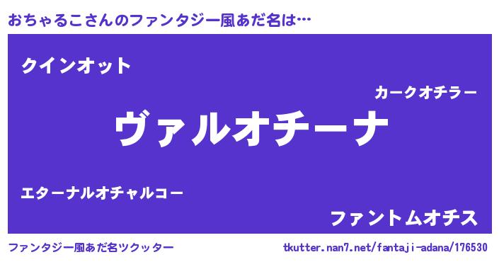 | 男性向けラノベタイトル風あだ名 | 『魔弾の王とおちゃるこ』 |