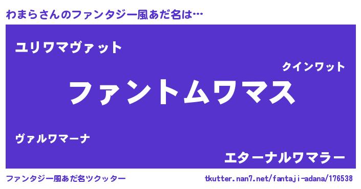| 女子向けラノベタイトル風あだ名 | 『わまらの卵を拾いまして』 |