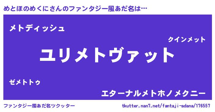 | 男性向けラノベタイトル風あだ名 | 『めとほのめくに~年齢イコール彼女いない歴の魔法使い~』 |