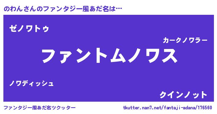 | 男性向けラノベタイトル風あだ名 | 『のわんに滅ぼされるだけの簡単なお仕事です』 |